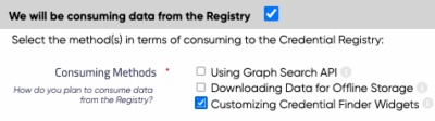 - On the organization detail page, select Consuming + Customizing Credential Finder Widgets.