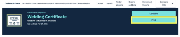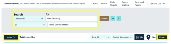 | Credential Finder Widget | Viewing custom Credential Finder search results that can be embedded on a website or downloaded | Web CSV |