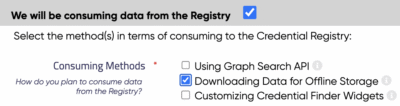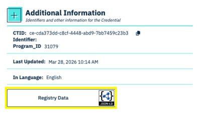 | Credential Finder Export | Quick access to subsets of Registry data via easy access web pages | CSV JSON-LD |